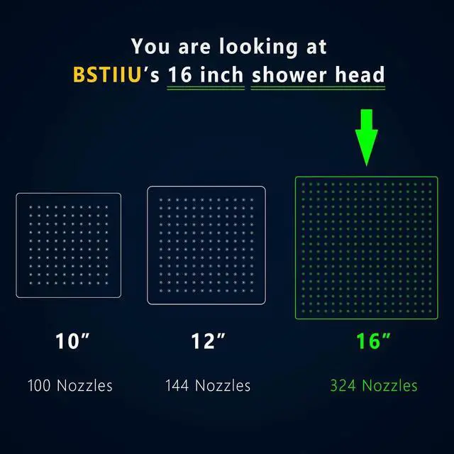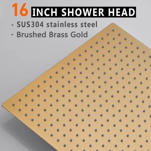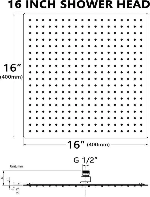 HEAVY DUTY MATERIAL: 16" rain shower head is made of high quality solid 304 stainless steel, extra large showerhead to give you a very comfortable shower experience, anti-corrosion and anti-oxidation performance & will not leak