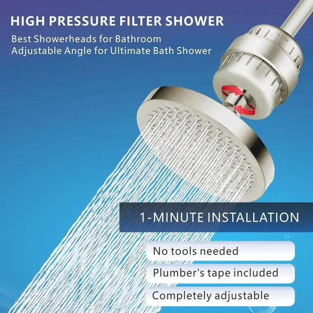 EASIEST NO-TOOL INSTALL - Universal (G1/2) shower head and filter for any standard shower arm. It is easy to install without tools. We have prepared a high-quality fashion gift box with a filter and Teflon tape to help you save money and provide convenience.