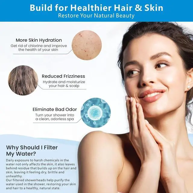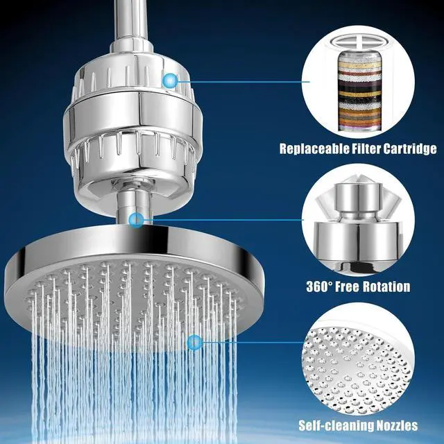 SAY GOODBYE TO CLOGGED SHOWERS - If the water contains minerals or other impurities, the shower nozzles can easily become clogged. But the shower heads with a filter can easily avoid this problem, the filter can block calcium carbonate and other particles in the water, and you will no longer have to worry about clogged showers.