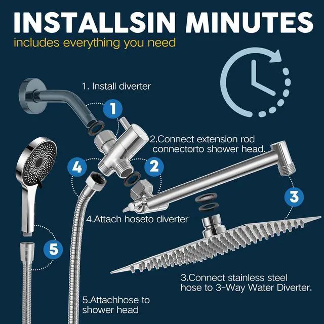 Easy to Install and AccessoriesPlease refer to the installation pictures or manuals inside the page. Use all standard 1/2 pipe threads. It can be installed in minutes and requires no handyman. If you have any questions, Please feel free to contac