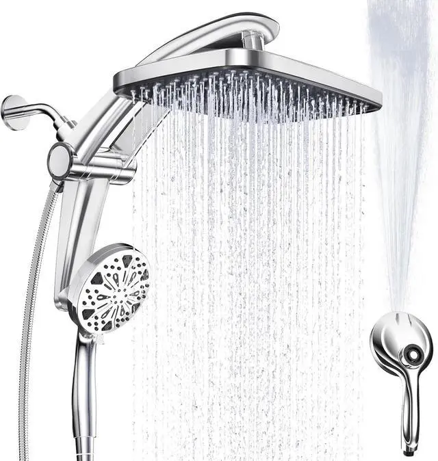 Magnetic Dual Shower Heads (Patent Inspired) Fixed rain shower head + detachable high pressure handheld shower head. Patented-inspired strong magnetic bracket ensures secure hold. Complete shower head with handheld system for versatile use.