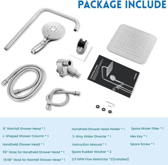 Efficient Water Flow: Each shower head has a flow rate of 2.5 GPM, ensuring a powerful and satisfying shower experience while conserving water. Ryamen shower head combo strikes the perfect balance between performance and sustainability, ensuring you enjoy a satisfying shower while helping to conserve water without sacrificing water pressure.
