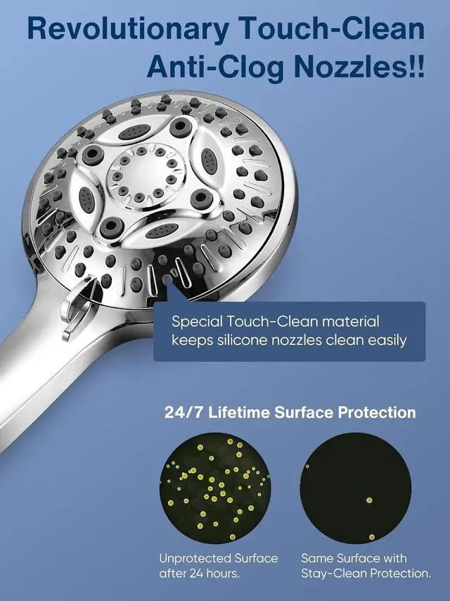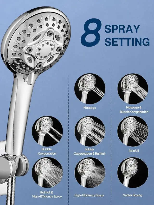 8 Spray Modes Handheld Shower HeadHeemli handheld shower head is different from regular shower head as it comes with 8 spray modes, which gives you a different shower experience. To meet the needs of the whole family at the same time you just need to switch between them at the touch of a button.