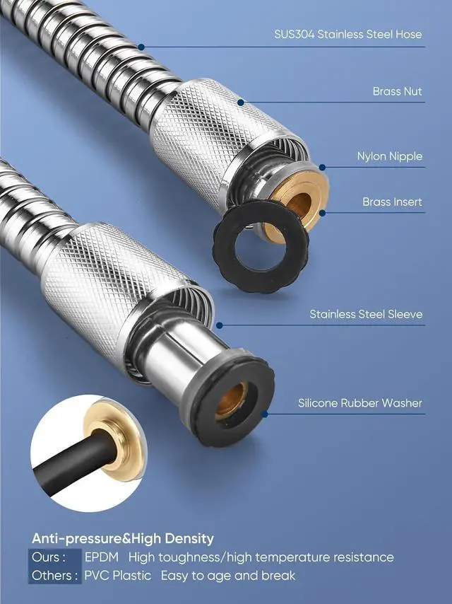 Upgraded 3-Way Diverter ValveMade of solid brass, it can be used with a shower head/hand shower alone, or with two showers at the same time. The unique rotatable shower connector best solves the wrong angle of most handheld shower diverters to keep the hose sagging and prevent tangling in the shower.