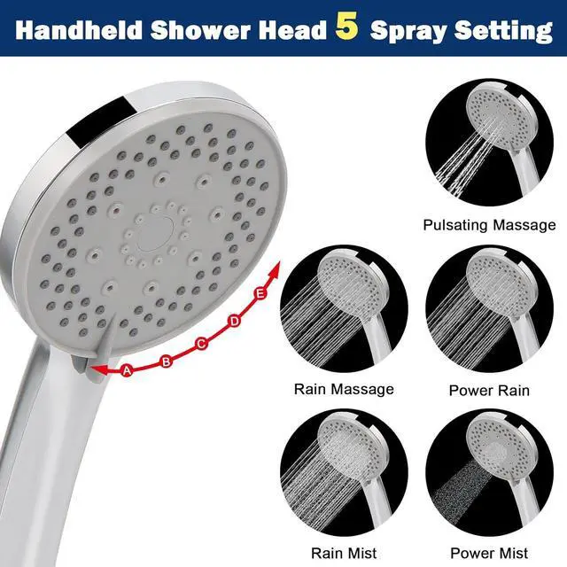 5 SETTINGS HANDHELD SHOWER: NearMoon handheld shower head has 5 functions for you to choose: Rainfall shower, power massage, waterfall mist, shower with power massage, and shower with waterfall mist. Choosing any setting you will get a waterfall, relax and pleasing shower!