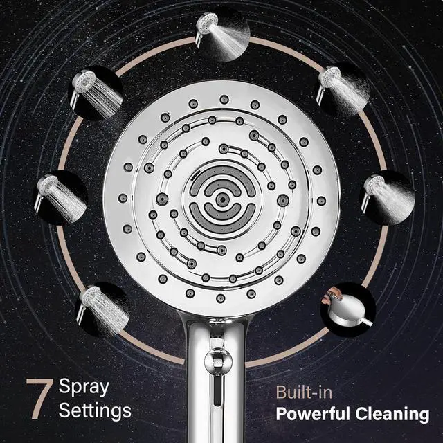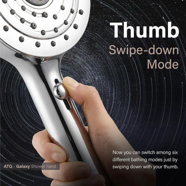 Pull springback Mode Shower Head: The mode switching function of the handheld shower head has been reformed and upgraded. You can switch between different modes simply by gently pushing down with your thumb, which can easily free your hands and allow you to fully enjoy a silky bathing experience. This handheld shower head has seven modes to meet all your bathing needs.