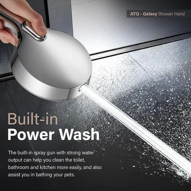 6 Spray Settings + 1 Power Wash Modes: Our powerful high pressure shower head with filters has 6 switchable settings (Rain Mods, Massage Mods, Bubble Mist Mods, Rain+Mist Mods, Rain+Massage Mods, Massage+Mist Mods ). Simply flip the handle of showerhead and turn it into high-pressure power wash mode. Wide Fan to quickly rinse-clean large areas. It' s the best helper for cleaning your tub, tile, pets, etc.