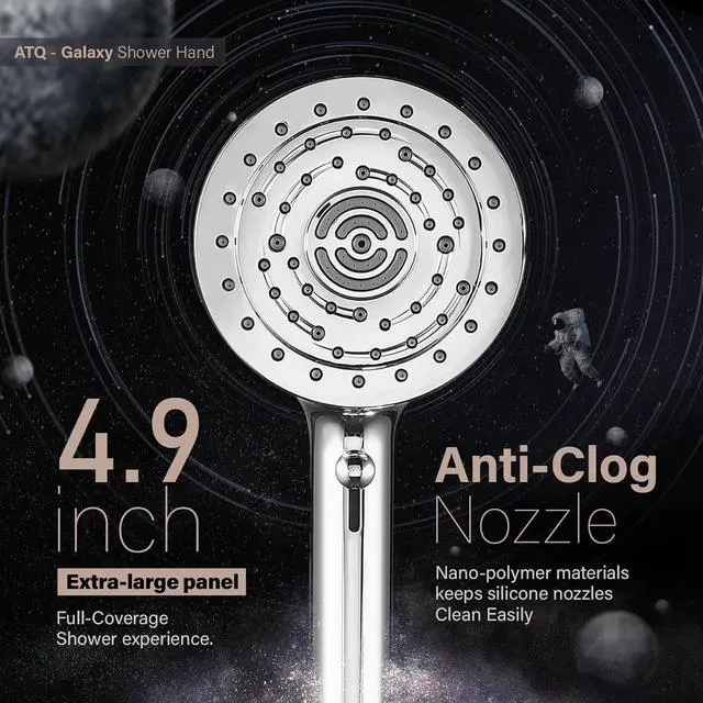 Shower head high pressure & Water Saving: The 4.9 inch filtered shower head is equipped with unique pressurization technology and self-cleaning soft silicone nozzles to prevent dirt buildup. The shower head is more water saving than regular shower, Exclusively designed high pressure system, which make pressure boosting effect for ultimate shower experience even at low pressure. It effectively relaxes your muscles and provides a comfortable bathing experience.