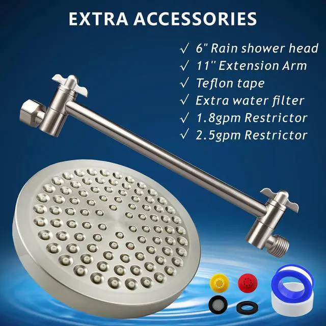 WATER SAVING - The kit also includes a 2.5 GPM and california compliant 1.8 GPM flow restrictor, helps reduce water pressure, no more wasting hot water while getting soaped up. So you can save on your water heater bill or enjoy longer hot showers.