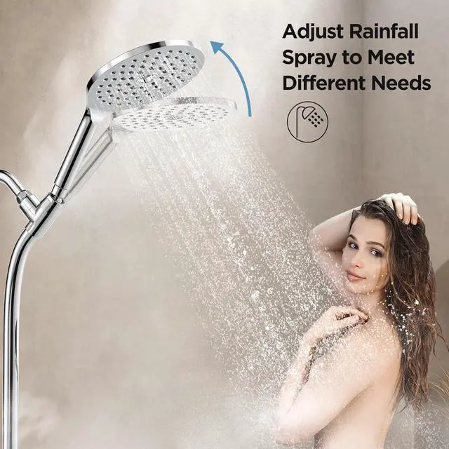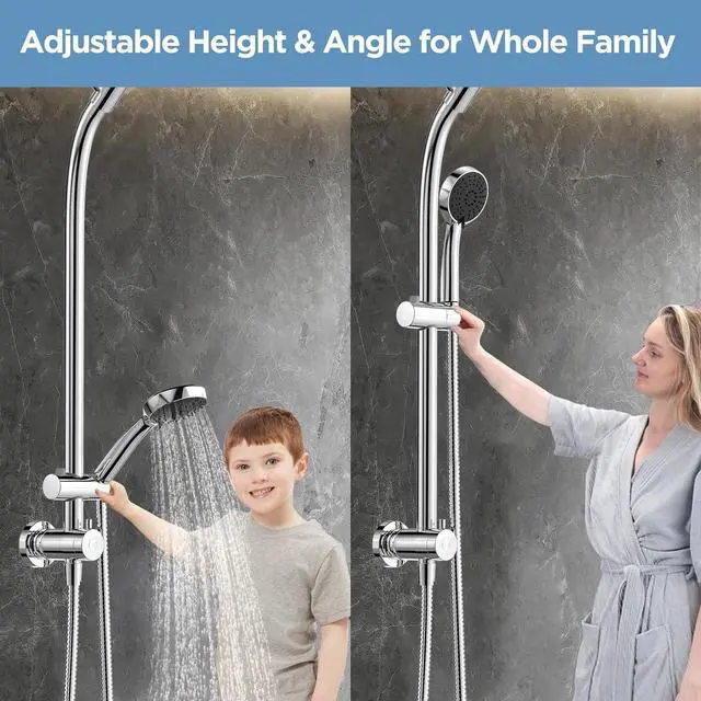 Slide & Glide to Your Perfect Height - Unlike rigid wall-mounted designs, our shower heads with handheld spray combo features a sleek sliding rail that lets you effortlessly glide the handheld spray up or down to your perfect height. No more awkward angleswhether youre rinsing kids, pets, or just craving a spa-like rainfall at eye level, customization is a fingertip away. Say goodbye to one-size-fits-all showers
