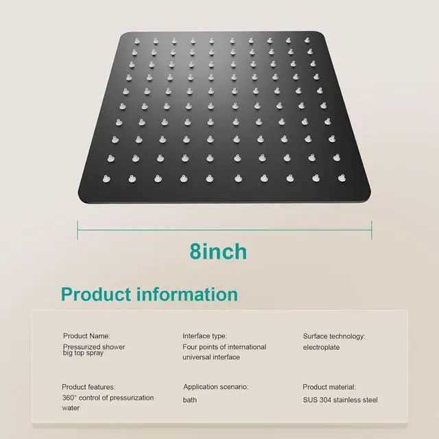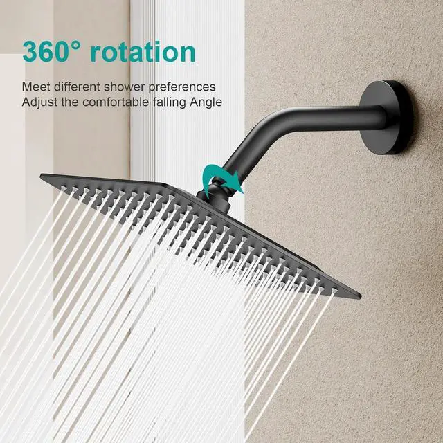 Square Rain Shower Head, High Flow Stainless Steel,Work with any decorative styleAll Metal Rainfall Shower Head (Matte Black, 8)