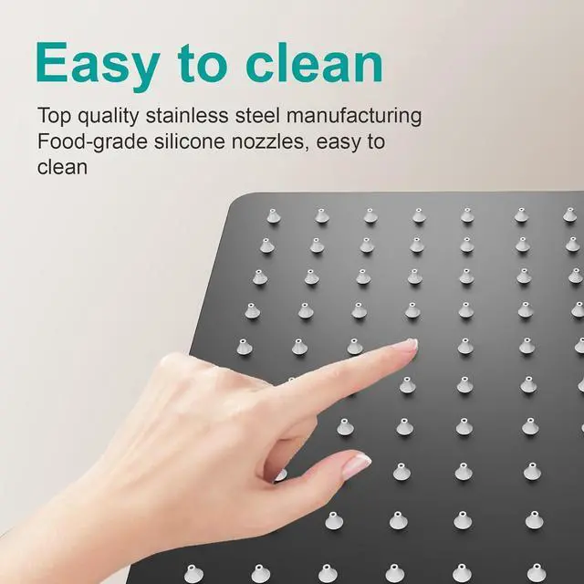 • The rain shower head is made of reinforced metal with a commercial grade finish that never flakes or rusts.