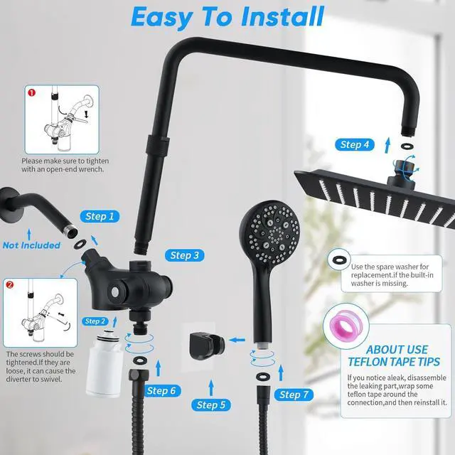 Easy Installation: For ease of installation, this shower head combo set comes with all the essential accessories. The metal construction is more sturdy and durable, with a longer service life. Please ensure that the distance from the outlet pipe to the ceiling 7.1 "