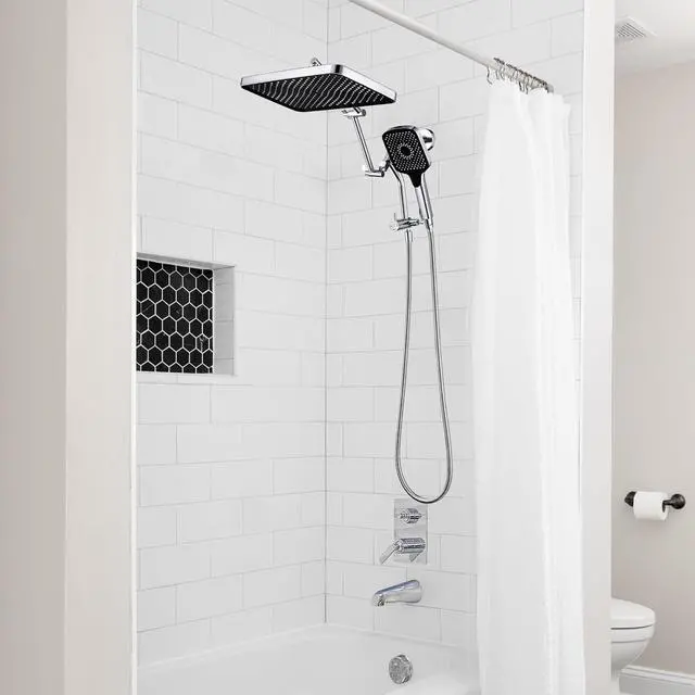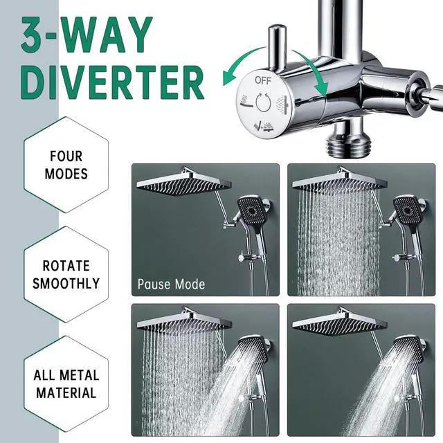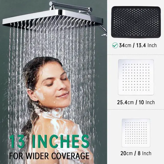 DUAL SHOWER COMBO: With the large 13-inch rainfall shower head, the water flow can cover your whole body quickly, so you can enjoy the shower. The two shower heads are made of durable ABS material