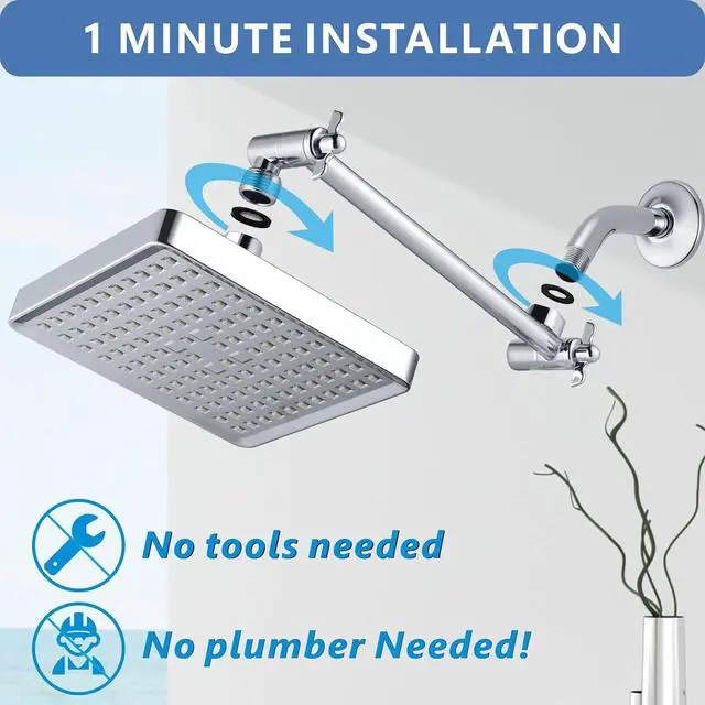 NO HASSLE TOOL-LESS 1-MIN INSTALLATION - A good choice for bathroom showerheads replacement, plumbers tape included. G1/2 threads connect to any universal shower arm.