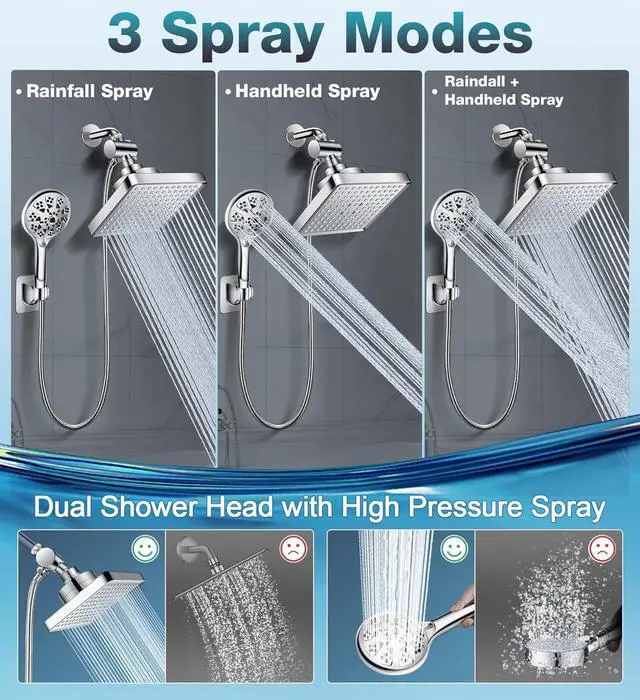 Dual Filtered Shower Head Combo: Compared with a single filter shower head, the double filtration system provides more effective at removing impurities and odors from the water