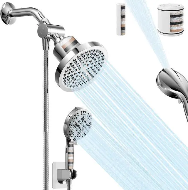 Dual Shower Heads With Filters To Purify WaterOur rain shower heads and handheld shower heads are equipped with a detachable and replaceable multi-stage powerful filter, which helps remove chlorine, heavy metals and other harmful substances. You will enjoy the cleanest shower experience with your family.