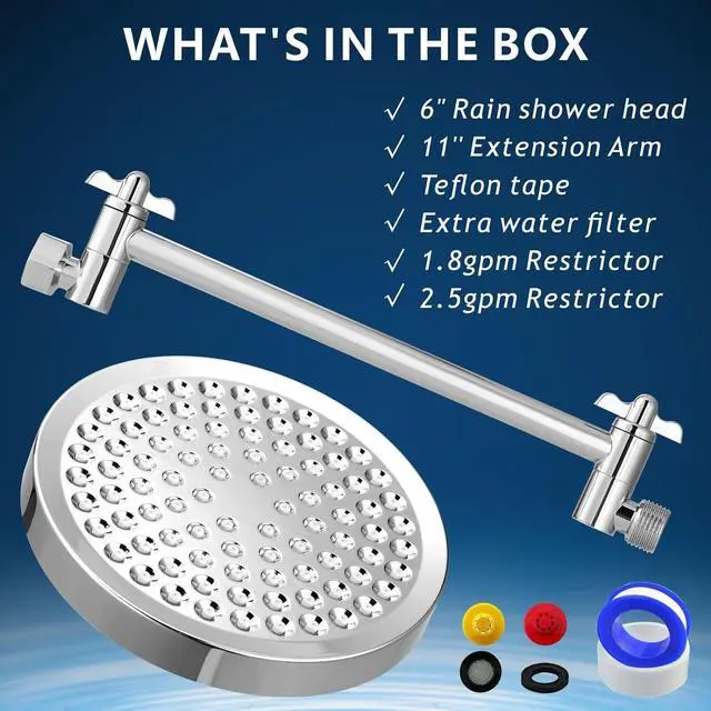 WATER SAVING - The kit also includes a 2.5 GPM and california compliant 1.8 GPM flow restrictor, helps reduce water pressure, no more wasting hot water while getting soaped up. So you can save on your water heater bill or enjoy longer hot showers.