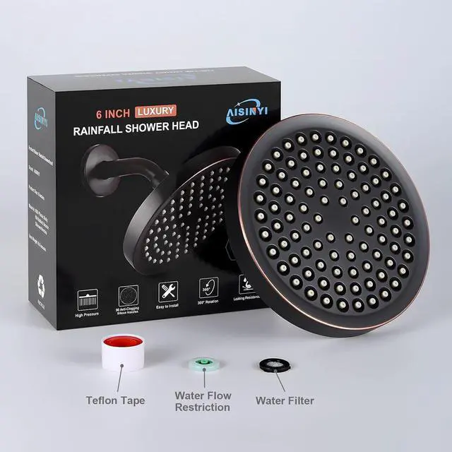HIGH PRESSURE RAINFALL SHOWER HEAD: Our 6 inches luxury bathroom high pressure shower heads produce rainfall water streams that relieve your body stress and rejuvenate the senses. In addition, our rainfall showerhead offers 1.8GPM removable water restrictor, so you can save on your water bill and enjoy a longer natural SPA at home.