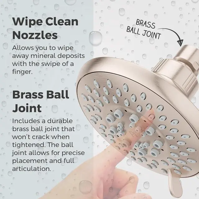 EASY TO CLEAN Wipe clean nozzles let you wipe away mineral deposits with the swipe of a finger; only use a soft damp cloth to clean and shine; avoid use of polish, detergents, abrasive cleaners, organic solvents, or acid which may cause damage