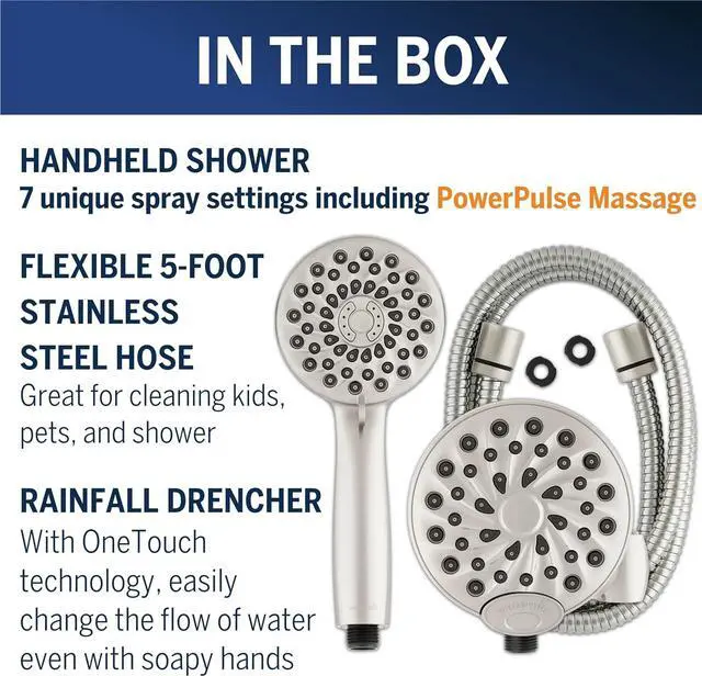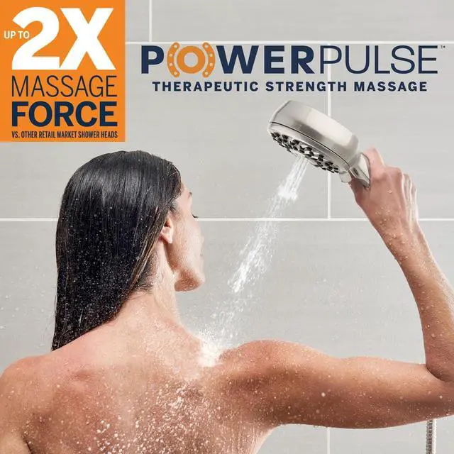 8 SPRAY MODES: Renew, refresh, and rejuvenate with the rainfall drenching shower head, or choose from 7 hand held shower spray options including our patented PowerPulse therapeutic-strength massage spray that provides up to 2X the massage force vs. other retail market shower heads.