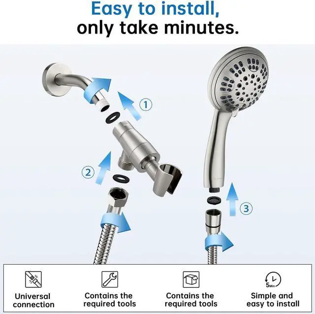 EASY AND FAST INSTALLATION: The package comes with all tools needed for installation, such as the wrench and the plumbers' tape. The illustrated instruction tells you installation step clearly. A super quality Teflon tape is always helpful during your installation