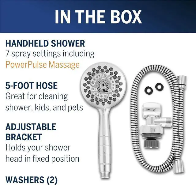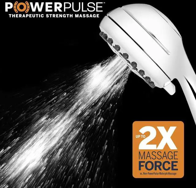 7 SPRAY SETTINGS: This hand held shower head has 7 modes to meet your needs including full body, PowerPulse Massage, and power spray; PowerPulse Massage is clinically shown to help soothe muscle tension, increase flexibility, and promote restful sleep