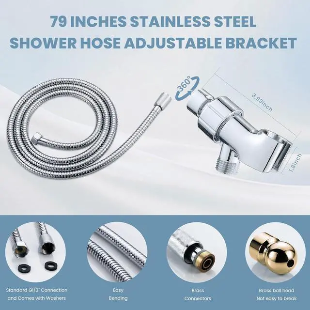 High Pressure Shower HeadWHZeffect 8 Modes Detachable High Pressure Shower Head with the pause switch and the Power Wash Modes. The multifunctional Sprayer meets all your shower requirements. Our shower head is equipped with 79-inch extra long Stainless Steel Hose, and Multi-angle Adjustable Wall Mount Holder. This long hose handheld shower allows you to adjust the high-pressure removable shower head to a comfortable shower angle, providing everyone a good bathing experience.