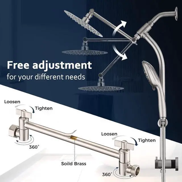 Upgrade Design For Extension Shower Arm: Made of Solid Brass with durable swivel joints that won' t crack or leak, 360° adjustable extension shower arm that can adjust the shower angle and height according to your needs