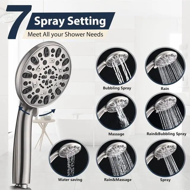 Rain Shower Head Combo: 8 Inch waterfall stainless steel Shower head with 7 Setting Handheld Spray to enjoy the unique shower with different water volume, which offer a luxury rainfall spa shower experience