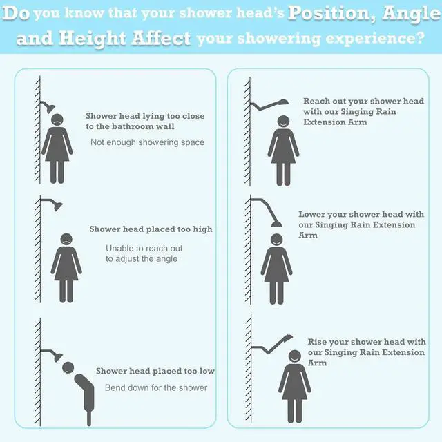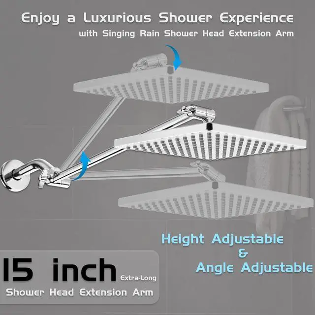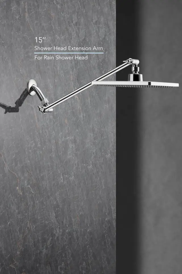 [Extra-Long Shower Arm] Singing Rain shower head extension arm is the perfect addition to any bathroom. This extra-long shower arm is made from solid brass and features two joints for adjusting the height and angle. It is electroplated with thick chrome for a sleek and modern look and also highly resistant to rust and corrosion. With its 15 inch length, its longer than most on the market and will reach more places in your shower. Enjoy a luxurious shower experience with the Singing Rain.