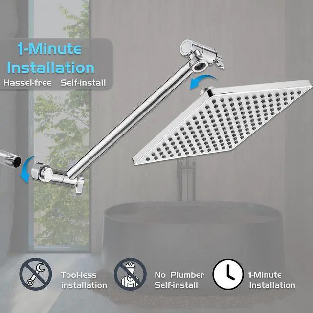 [Hassle-less Self-Installation] All parts in this combo package are compatible with each other, the size of the connectors is G1/2 inch universal thread, and with the included tools and accessories even a kid could install this set in a second and does not need to worry about getting it wrong. No plumber needed, one minute install.
