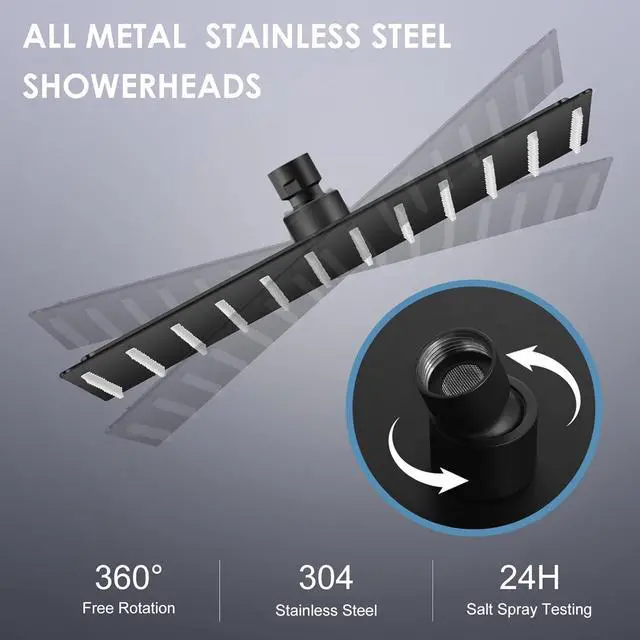 PREMIUM RUST PROOF QUALITY - The Waterfall shower head, crafted from great Solid 304 Stainless Stee, undergoes a 24h salt spray test ensuring long-lasting durability and resistance to rust, leaks, and sagging. The sleek matte black finish adds a touch of elegance to your bathroom while ensuring a long service life, making it a timeless addition to your shower space.