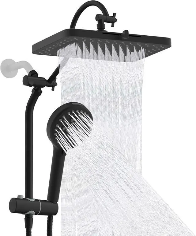 [Upgraded 5 Spray 13" Rainfall Shower Head] This 13rain showerhead features 157 splash jets to offer greater coverage than traditional models. It delivers a dynamic, high-pressure massage experience, ensuring a lavish shower even in low-water pressure areas. Enjoy a soothing rain mode in gentle water flow, or switch to the 8-inch powerful massage mode for a revitalizing experience that eases sore muscles. The pulsating massage setting effectively reduces fatigue, while the shoulder massage feature targets tension with a focused spray for ultimate relaxation. Plus, the intuitive one-touch water stop minimizes temperature fluctuations, making it easy to apply shower gel or rinse off