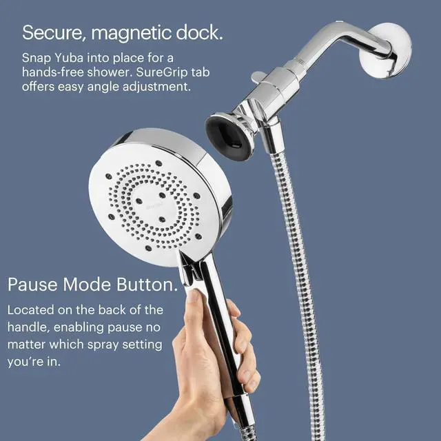 YOUR WAY: Immerse yourself in one of 4 luxurious sprays: Hard, Focused, Power, and Angel Hair; Yubas 5-settings includes an integrated Pause button to further reduce water flow, saving additional water while lathering or shaving