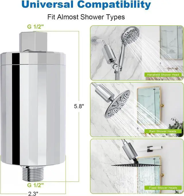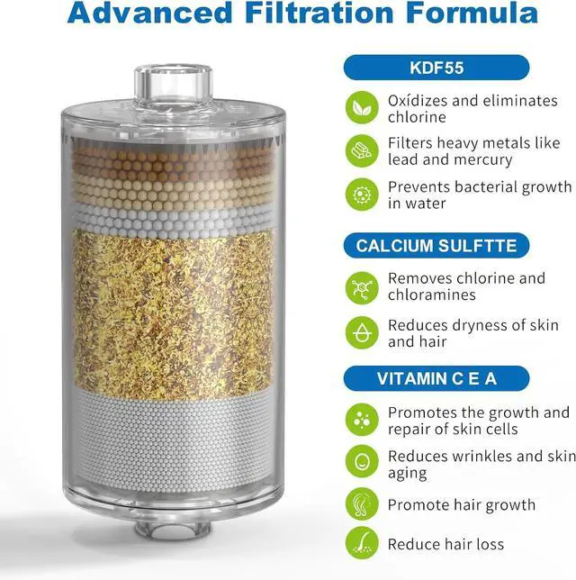 BLOCKING INJURY-KDF and calcium sulfite, removing residual chlorine and heavy metalsRemove Toxic Chemicals Fresh and healthy water can eliminate skin sensitive redness, reduce dandruff and eczema, eliminate bad smell, and make you feel energetic and in a good mood every day
