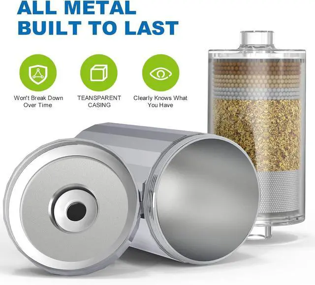 METAL HOUSING All metal, thick guage construction outlasts plastic and WONT BREAK, CRACK or LEAK. Precision machining protects threads from stripping for long-term use. see-through filter lets you visually check its condition at a glanceJust unscrew the shell and you' ll know what you have-full of high-efficiency filter material