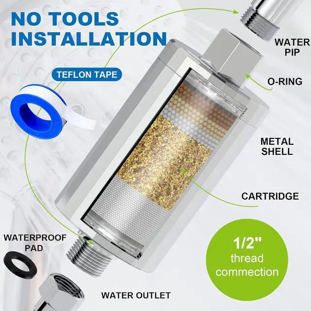 NO TOOLS REQUIRED: You can easily remove your old shower filter and replace it with this filter in minutes, and it works with all types of showers - including stationary, rainfall and handhelds. No tools are required. We also provide free Teflon tape and rubber gaskets to avoid leaks