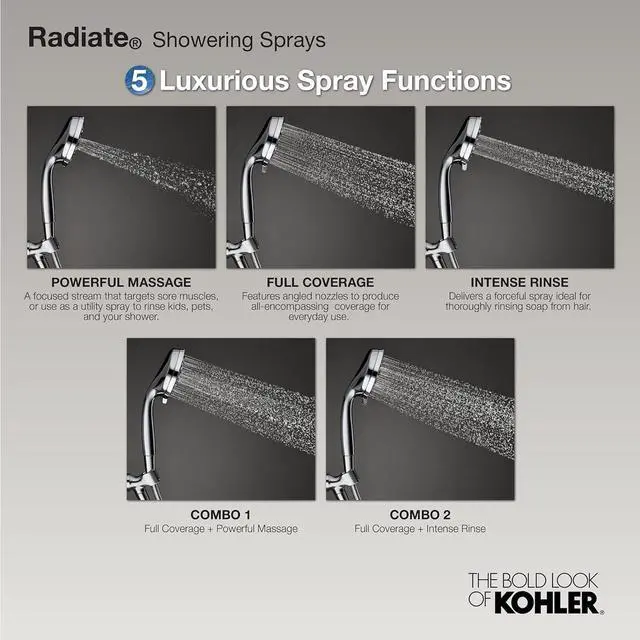 Powerful Massage: A focused stream that targets sore muscles, or use as a utility spray to rinse kids, pets, and your shower