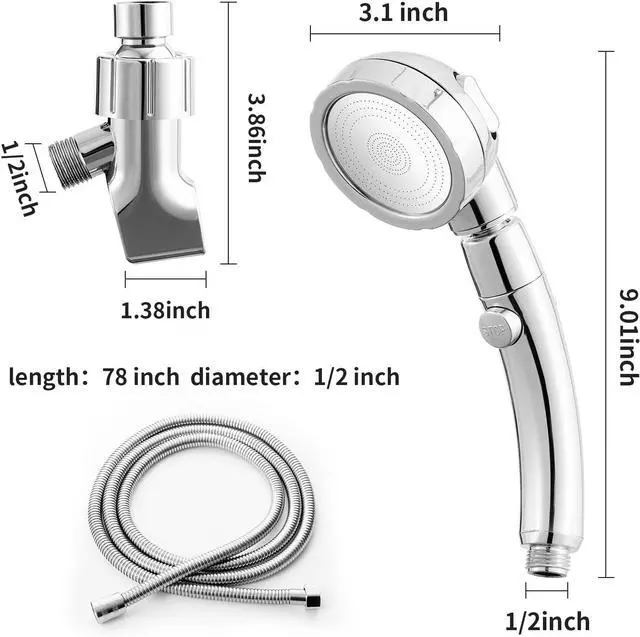 PREMIUM QUALITY: With high quality ABS material and chrome plated technology, our high pressure handheld shower head is lightweight, durablelead-free and rust-proof. Ensure your shower safe and comfortable. By offering superior convenience, it is ideal for Bathing Kids, Washing Pets and Cleaning applications or used as RV / Camper shower head. If you have any dissatisfaction about our products, feel free to contact us via at any time.
