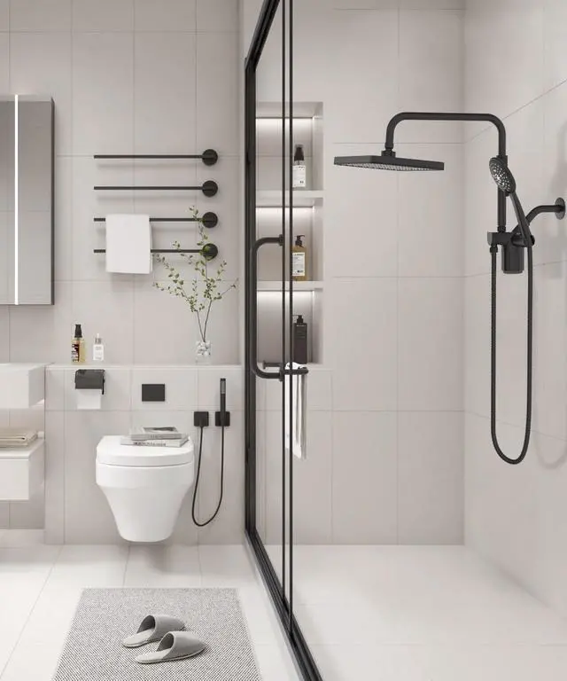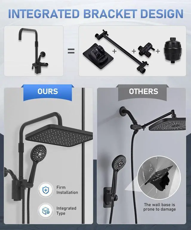 [Unique water distributor]-Unlike other shower heads, our filter-type rain shower head with handheld combination does not require a bracket to be installed on the wall. There is no risk of the shower wall mount falling off, and the rotating design allows for multi-angle adjustment, providing a more flexible and comfortable user experience.
