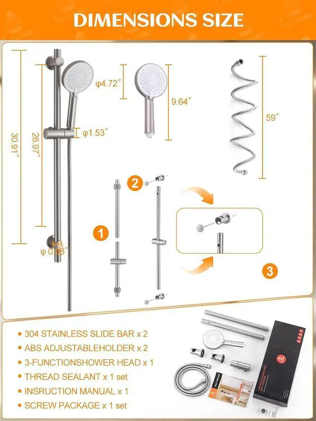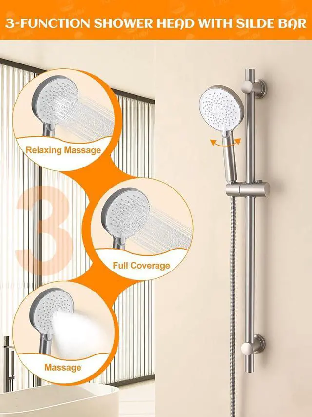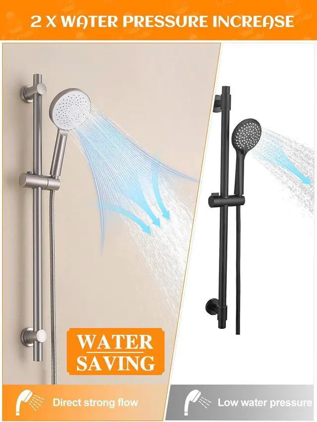 2025 Upgraded Handheld Shower Head with Slide BarTired of flimsy plastic showerheads that break or peel? Shower Slide bar is made from solid 316 stainless steel, this shower set is built to last, offering a rust-resistant, total material consumption is three times that of other products. Imagine the confidence of a pristine, durable showerhead that enhances every rinse. The RARANDA Shower Head with Hose provides powerful yet relaxing water pressure, with a flexible hose that reaches every corner effortlessly. Say goodbye to cheap materials and enjoy the luxury of RARANDAs premium design for a truly rejuvenating shower experience.