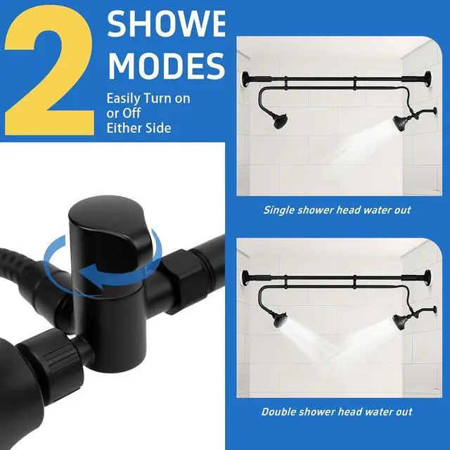 DOUBLE THE SHOWER EXPERIENCEOURBAOFU tandem shower heads system will upgrade your bathroom into a spa-like retreat! Designed for couples, this double shower head comes with two shower heads for a spacious and luxurious experience. Whether you want to enjoy a romantic shower with your partner or just need more space, this system allows you to share shower time comfortably and happily.