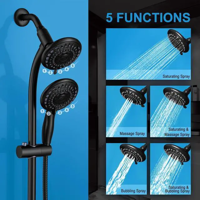 ANTI-CLOGGING NOZZLES - Don' t have to suffer from two shower head with clogged nozzles or spraying in wrong direction. With unique self-cleaning nozzles which are made from mineral- resistant silicone, and resistant to lime and mineral deposits, calcium and mineral deposits can be easily removed by rubbing the nozzle back and forth with water on.
