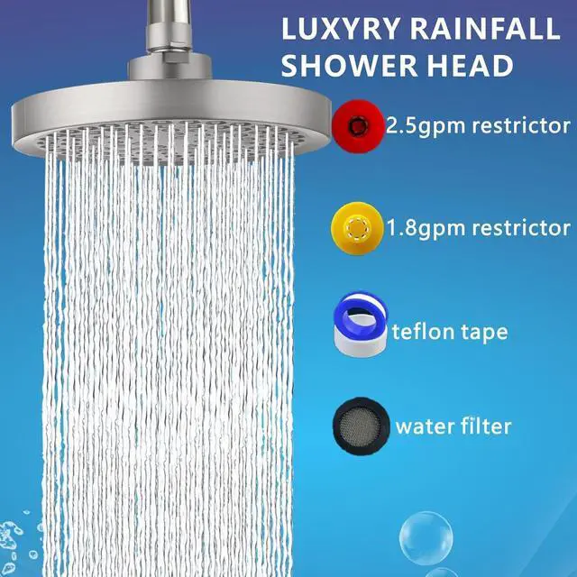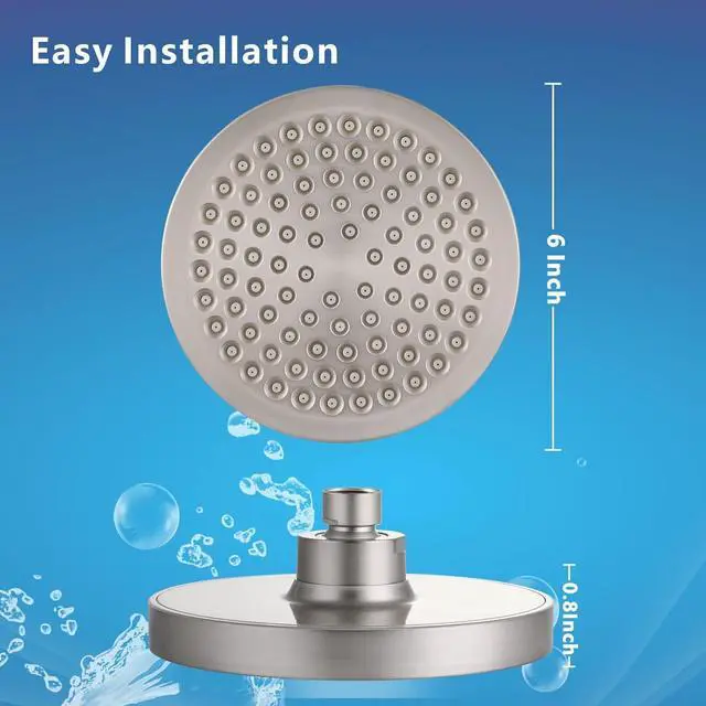 HIGH PRESSURE - 6" round powerful rainfall spray for efficient, Provides an efficient and comfortable hotel SPA shower experience even in low water flow or low water pressure conditions.