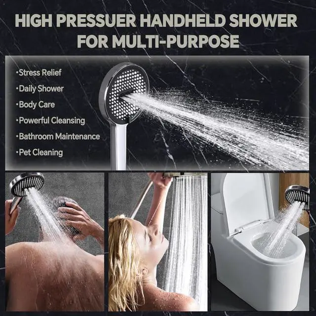 3+1 High-Pressure Handheld Shower: Enjoy versatility with three spray settings and a convenient shut-off valve. Whether you need a gentle rinse or powerful massage, this wand provides ample water flow for washing hair and body. Switch to high-pressure spray mode to relieve muscle tension or for vigorous cleaning tasks.