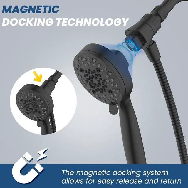 Upgrade Magnetic Docking Technology: Our unique shower head features a new magnetic docking system, this self-aligning magnetic dock design will provide 360°stability. The high pressure shower head with handheld effortlessly snaps into place with a strong magnetic force, no wobbling, no slipping, which unlike flimsy hooks. This height of magnetic shower head makes it easier for women and children to switch quickly