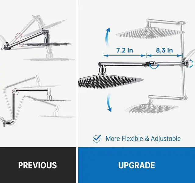 MORE FLEXIBLE & ADJUSTABLE: You can use it as a gooseneck extension to raise your shower head by 8.3 inches. You can also use it as a regular extender to keep the shower head extra 16 inches away from the wall. You can even lower the shower head by 8.3 inches. Compared with the regular extender, this one can raise the shower head higher or lower and keep the shower head in a horizontal position all the way