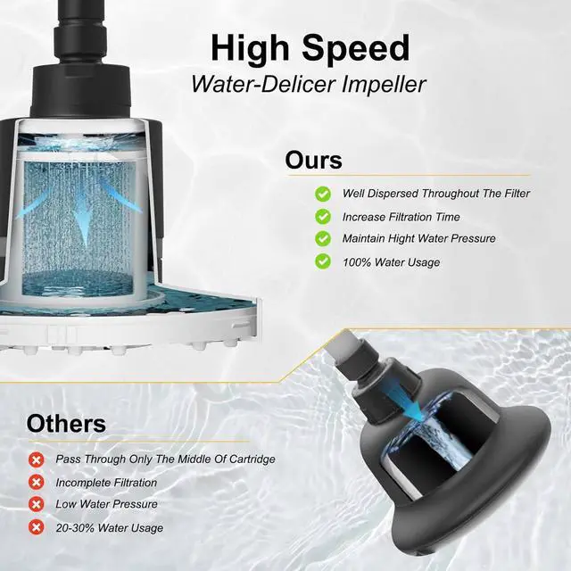 STABILIZED WATER PRESSURE: Our high output shower filter delivers clean water without reducing the existing water pressure, providing a more comfortable showering experience. It' s also a shower head water softener so you' ll have less bathtub residue.