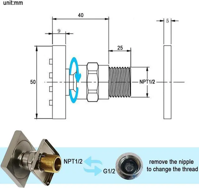 CONCEALED INSTALLATION: Connect size NPT1/2, Easy to Install. Fits standard american.